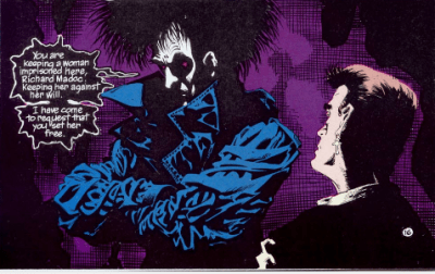 I first read The Sandman when I was about 18 or 19, and starting to get into the ‘serious comics’ scene. I’d read Watchmen and V for Vendetta and enjoyed them, but The Sandman was one of the first long series of TPBs I decided to collect. My age when I first read it has probably badly coloured my opinions; I was skinny, short, unhappy and basically a proto-goth. The Sandman is manna from heaven to guys (or girls, probably) like that. I’d even bought a ridiculous floor-length leather coat after watching The Matrix and Buffy too many times. It is still two sizes too large for me. But I figured if looking grim and moody worked for Angel, it could work for me (spoilers: it didn’t).