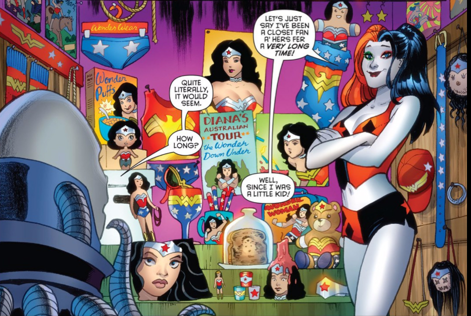 Harley Quinn, being a submissive trapped in a cycle of abuse, would have made the perfect fodder for a Golden Age Wonder Woman story. In one particularly relevant instance, Diana liberated a group of young women from a Nazi tormentor then, as a method of recovery, shipped them off to Themyscira where they were assigned an Amazon dominatrix as a replacement they eagerly accepted. Unfortunately, Diana kicking The Joker to the curb and bending Harley over her knee wouldn’t pass muster by contemporary storytelling standards, but I’m sure there’s plenty of fanfic out there to indulge the impulse.