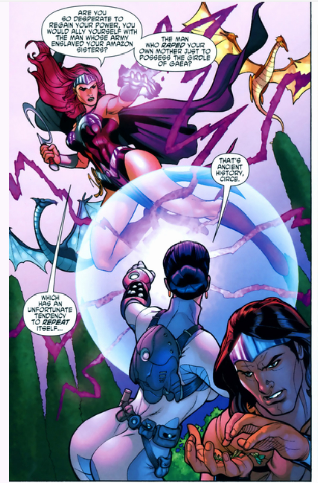 Circe presents a particularly interesting case as a foil for Wonder Woman because she, both within the DCU and her origins in Greek mythology, has very legitimate grievances with men that are more or less on par with Hippolyta’s. While in the real world massive retaliatory violence is problematic for a lot of reasons, it’s a moral question well worth asking in a fictional setting, especially one starring a feminist superhero.