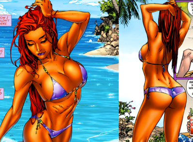 The fact that creative teams at the big two actually give a damn about what their female audience members think because they’ve realised that WE SPEND MONEY ON COMICS TOO is amazing to me and it’s really only happened in the last five years or so. I mean, this is how Starfire was being born in 2011, guys: