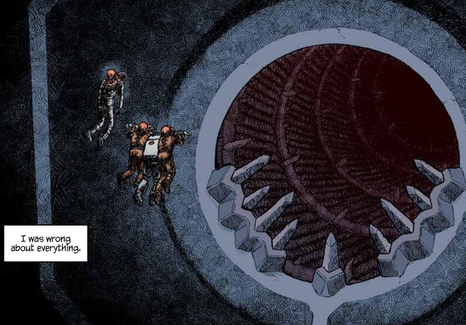 But shit man: when an author feels the need or whatever to be like: oh yeah – this means this thing and this means that thing (actual quote from Night Works: Some Keys to the Abyss in Nameless: “Sofia’s “Shhh” at the end suggests the closing of the Wordless or Silent Aeon of Horus”- to which I can only reply: really?) – that’s kinda the point when I tend to opt out. Because isn’t it a total diminishing of what a comic (or whatever else) can do? As if a story is nothing more than a code to be translated. I mean: that kinda boring and superficial approach is what leads us to things like The Martian: with no room for the unknown subjective effects that a book can have on a human brain.