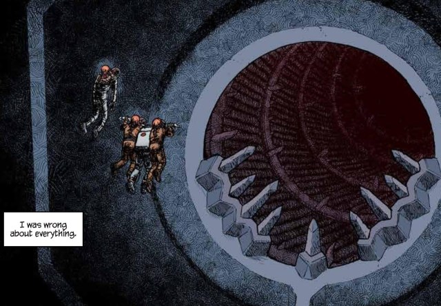 And ooooh: check it out – if you get a copy of the Nameless collected edition at the end there’s this thing called “Night Works: Some Keys to the Abyss in Nameless” written by Grant Morrison which yeah: makes me want to stand on something tall and shout out “BULLSHIT” as loud as I can. But that can wait a second. Because firstly there’s this thing: “We also wanted to do something that worked more like a poem or a piece of music than a movie or TV show, bypassing the rational mind to aim directly at the subconscious.”