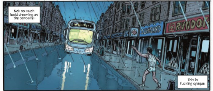 But yeah: Nameless (and I think that this is a quality that a lot of Grant Morrison comics kinda share) is all pitch and not so much story. All marco and no micro. Like: the best way to maybe capture this is that – I reckon if you did a Nameless remix and swapped the pages and panels around like: you wouldn’t really lose all that much. Which yeah – isn’t the best sign: because well erm stories and stuff? You know: a story should work in a certain way, produce certain effects and etc etc etc