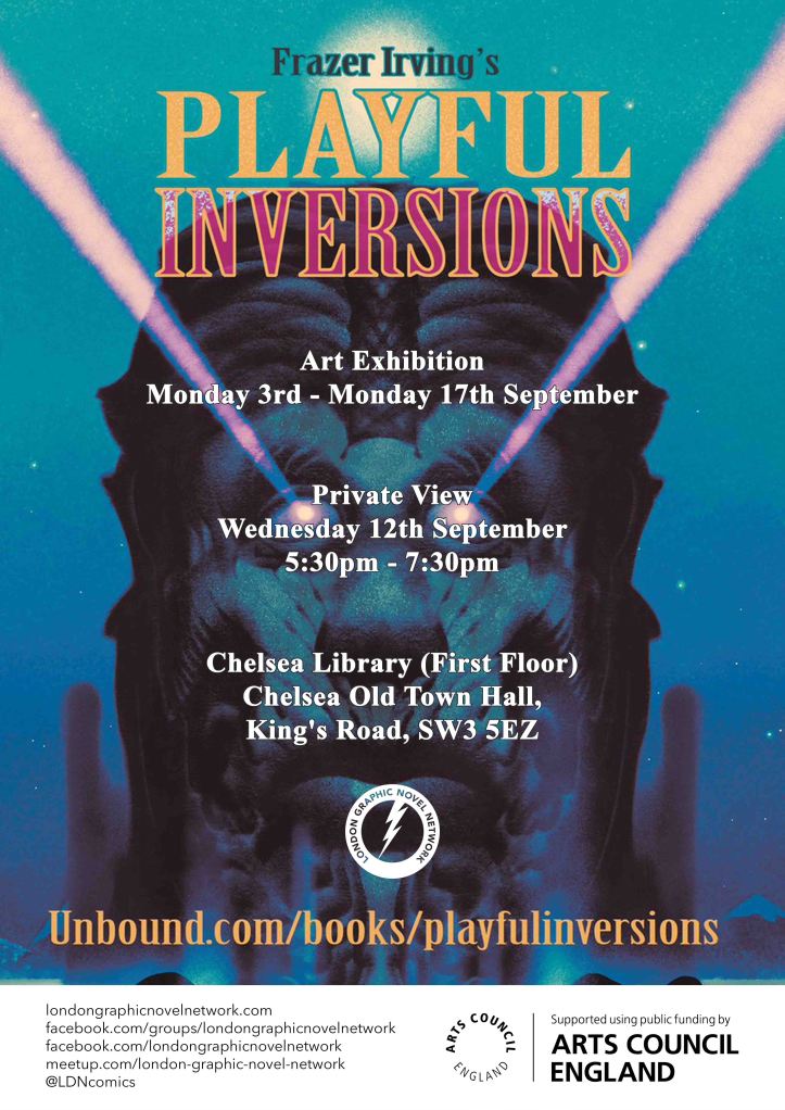 Free art exhibition to showcase the launch of Frazer Irving’s first collaboration with Unbound Publishing in the form of Playful Inversions, an illustrated compendium of creative collaboration!