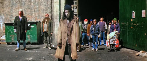 Also – that thing I said before about the thrills not being front-loaded? That’s actually bullshit. I mean if you like to think of movies as basically being a collection of cool scenes stitched together then Prince of Darkness is probably pound for pound one of the best movies out there. Like it’s been a while since I’ve rewatched it but there’s so many cool moments that are etched into my mind like dirty words on a school desk: Man’s head falling off in the basketball court (“Pray… for death”). Evil Green Vomit going in backwards. All that shit with the mirrors. Evil homeless people standing around in a kinda fucked up way. Green glowing liquid. Fucking up looking belly swelling. IN FACT… YOU WILL NOT BE SAVED! And – oh yeah holy shit – “This is not a dream. Not a dream. We are using your brain’s electrical system as a receiver. We are unable to transmit through conscious neural interference. You are receiving this broadcast as a dream.” (which still makes all the necks on the back of my hair stand up).