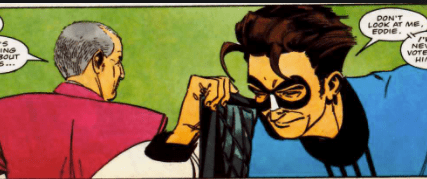 With his quiff and snazzy garms, he was the street realism that Moore injected into his own superhero take but it had no interest in the superhero lore and four coloured epic adventures.