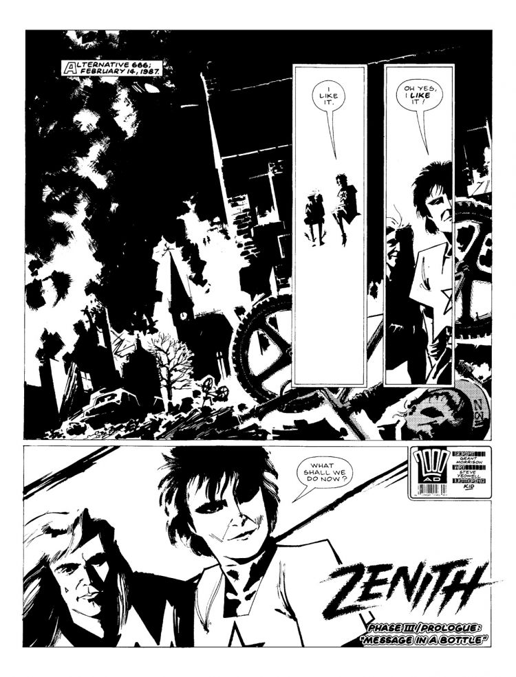 The basic premise of Zenith is that Zenith is a superhero who’s basically a cocky little gobshite. Which – coincidentally was also Grant Morrison’s persona back in the day. Long story short Grant Morrison basically made the calculation that the best way to make themself known in the comic book industry was by being an obnoxious prick and desecrating lots of sacred cows (which mostly it seemed involves saying things like “Watchmen is overrated” which is a tradition is keeps up to this very day). Partly I’m guessing this is a stance that originated from the fact that their first choice of career was being in a band. And you know – the whole punk mentality that kinda drifted over everything that for a while there basically meant that if you wanted to get anywhere you needed to cuss off all the other bands who were bigger than you in order to stand out (“I just think that Coldplay is basically music for vegans” or whatever). To be fair to them – this was a strategy that worked. They got lots of publicity. Their star ascended. And they’re now arguably one of the major comic book writers of all time.