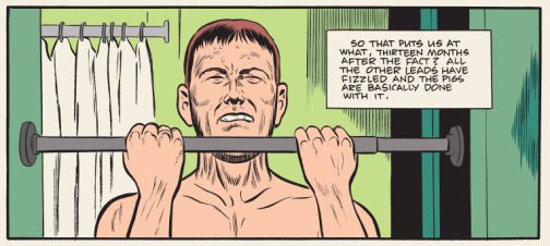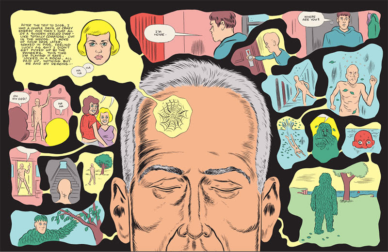 A) If you thought Daniel Clowes mainly dealt with kitchen sink realism in his previous work you’ve been reading it wrong. he has never been a realist, of any stripe. I’d say that his main stock-in -trade was satire. He nails a certain self-involved, hopelessly deluded, unthinking America better than any other artist I can think of from his country.