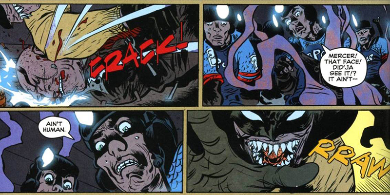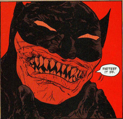 Admittingly tho I can easily imagine a die-hard Batman picking up Year 100 and wrinkling up their nose in disgust. “What the hell is this nonsense? Where’s the Batmobile? Where’s Wayne Manor? Where’s the Batcave? And what’s with the teeth?”
