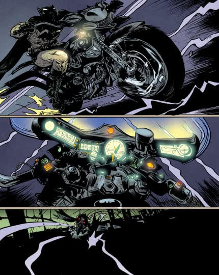 Of course (ha!) it’s worth pointing out that Batman: Year 100 is still – yes – a Batman book. He’s still got the cape and the cowl. He’s still fighting the bad guys. Commissioner Gordon is there. Robin and Oracle too. So really it’s placed in that same awkward intersection between the two opposing poles of people who just want the same thing and people who want something different – this is the compromise: something with the same ingredients but prepared in a way that you haven’t experienced before. It’s like if Batman got spliced with Akira. Batman goes electric.